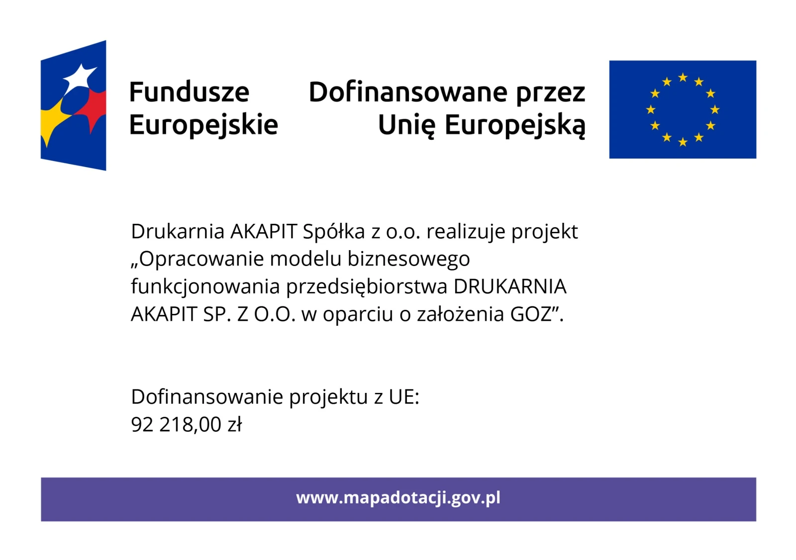 Tytuł Projektu: Wprowadzenie innowacji poprzez wdrożenie rekomendacji wynikających ze strategii wzorniczej przedsiębiorstwa Drukarnia Akapit Sp. z o.o.