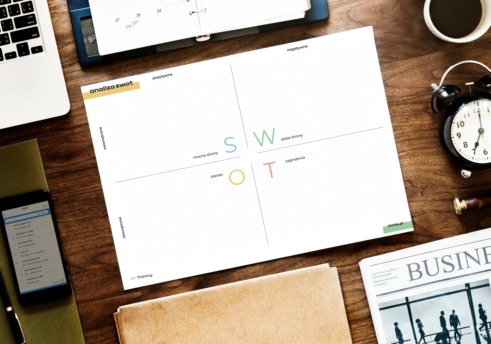 Tablica analizy SWOT to narzędzie umożliwiające systematyczną ocenę wewnętrznych mocnych i słabych stron oraz zewnętrznych szans i zagrożeń związanych z daną firmą, produktem lub projektem. Poprzez przedstawienie tych czterech wymiarów w strukturalny sposób przeprowadzenie analizy SWOT pomaga zidentyfikować istniejące korzyści, wyzwania oraz możliwości poprawy i rozwoju. Analiza SWOT dostarcza zarówno wglądu w otoczenie rynkowe, jak i w wewnętrzną sytuację organizacji, co umożliwia podejmowanie lepiej wyważonych decyzji strategicznych oraz wypracowanie efektywnych planów działania.
