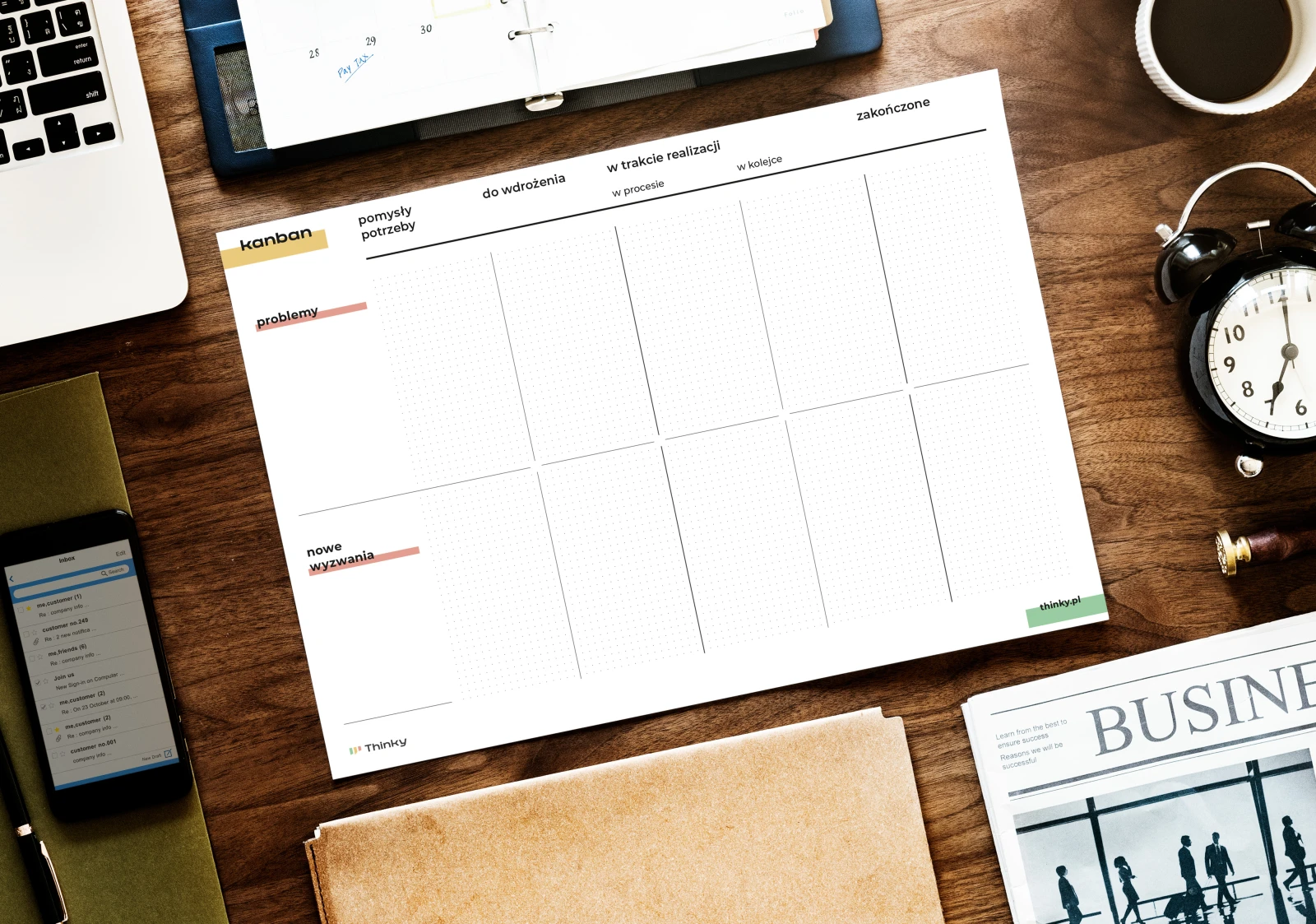 THINKY to zestaw materiałów, planerów oraz matryc szkoleniowych, które ułatwiają prowadzenie warsztatów,
